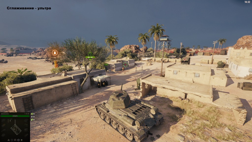 Параметр «сглаживание» делает более гладкими края объектов и убирает различные «зазубренности» с них. Как правило, сглаживание довольно «прожорливая» к ресурсам компьютера графическая настройка, но в World of Tanks она не так критично влияет на производительность, поэтому даже на относительно слабых ПК можно выставить минимальный или даже средний показатель, но если fps держится в районе ниже 30 кадров, то наилучшим решением для повышения производительности будет отключение сглаживания.