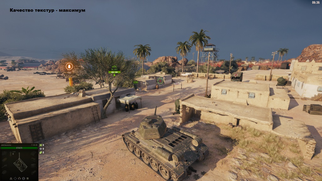 «Качество текстур» - это, наверное, самый основной параметр, который достаточно сильно влияет на производительность, а также на качество и детализацию изображения в World of Tanks, включая все трехмерные объекты в игре. Чем выше качество текстур - тем четче и детальней выглядит картинка. Этот параметр напрямую зависит от объема встроенной видеопамяти графического адаптера.