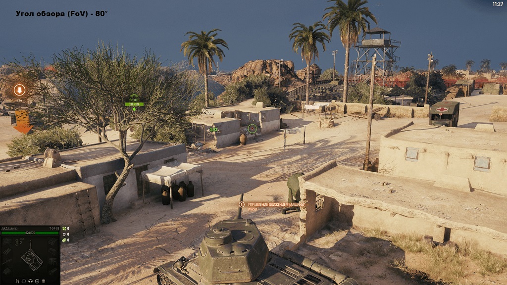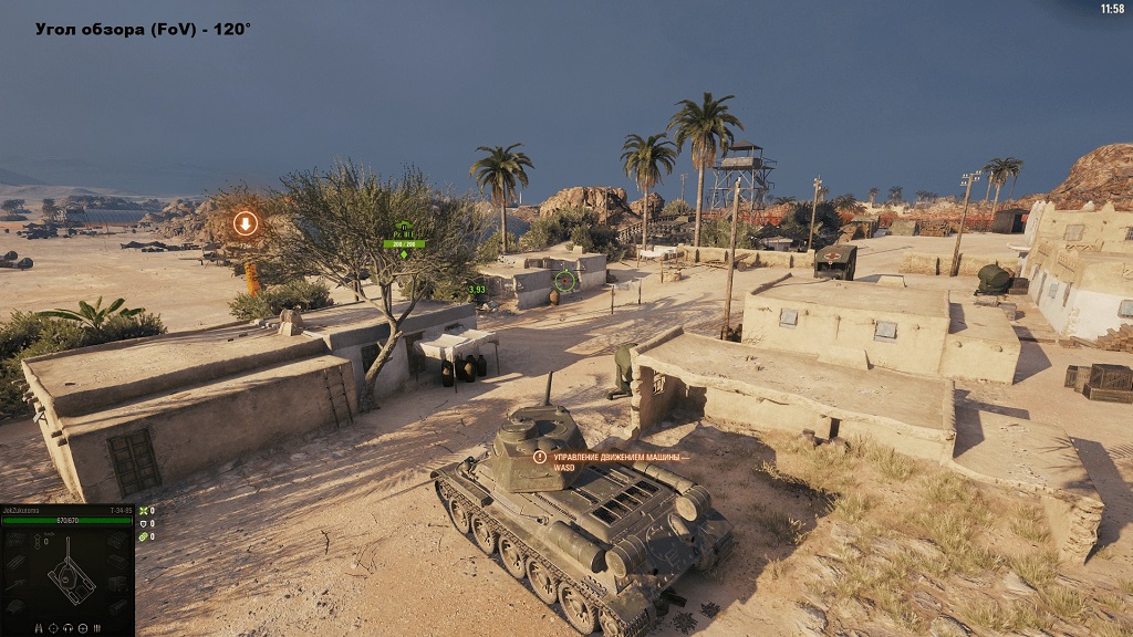 «Угол обзора (FoV)» - параметр, который изменяет угол обзора камеры игрока в World of Tanks. Напрямую он никак не влияет на производительность, однако, может повлиять на нее косвенно. Дело в том, что выставив угол обзора на максимальное значение 120° на экран монитора будет попадать больше игровых объектов, которые требуют обработки со стороны процессора и видеокарты, поэтому в теории, уменьшив угол обзора можно добиться повышения производительности игры, однако, на практике мы не заметили никакого влияния этого параметра на fps.