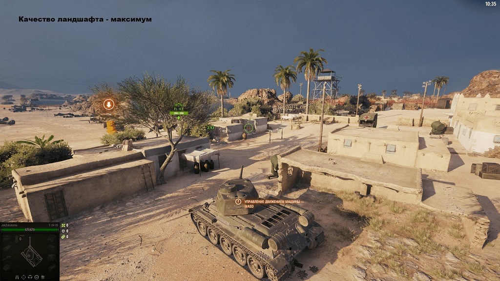 «Качество воды» - параметр, который добавляет отражения объектов от воды, а также добавляет эффекты волн и вибрации воды при движении танка в ней. «Качество ландшафта» - это дальность прорисовки и качества детализации земли. Качество ландшафта достаточно сильно нагружает процессор и видеокарту, а при его отключении или выставлении на низкую настройку, в игре пропадают ландшафтные объекты, которые на самом деле есть, но их будет просто не видно. Этот параметр важный со стороны геймплея, ведь враг может спрятаться как раз за каким-нибудь небольшим холмом и Вы его будете видеть, но выстрелив во вражеский танк, снаряд попросту попадет не в него, а в этот «невидимый холм». Поэтому не рекомендуется снижать этот параметр до самого низкого, лучше выставить хотя бы среднее значение.