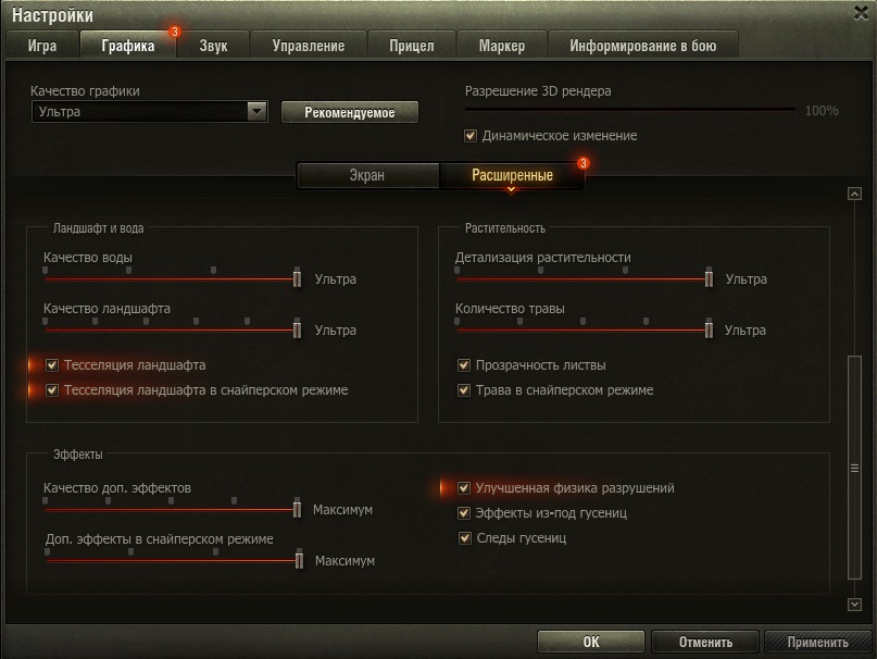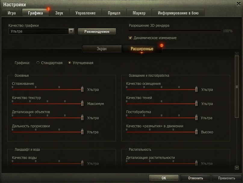 Расширенные настройки графики World of Tanks